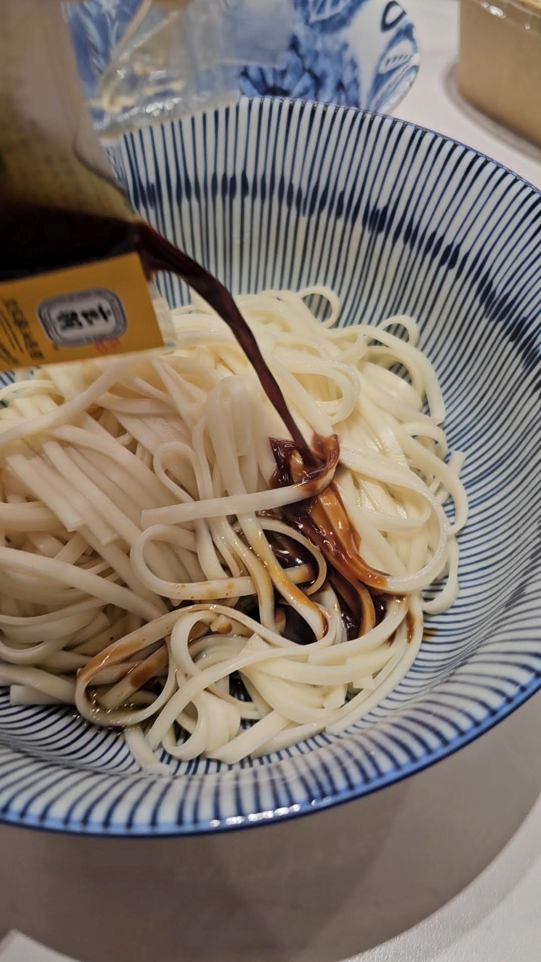 拌麵|煮好熱麵條,淋上雞蔥醬即完成職人拌麵